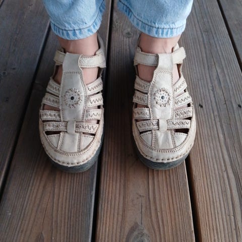 Sandaler i skinn, brune ("støvbrune"). Størrelse 37.