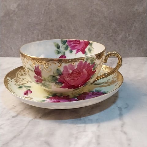 Ottoman style porselenskopp med flerfarget blomstermønster gullkant ornamentalt