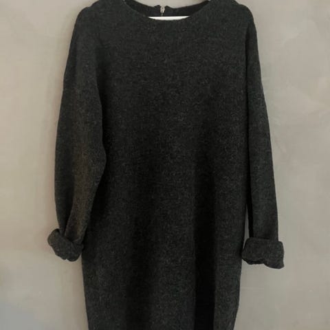 - koksgrå/svartich t skjorte fra Moss Copenhagen. Mye stretch. Oppretta ermer. Modellen heter Alva wool. Er en lang modell og veldig oversized i looken.