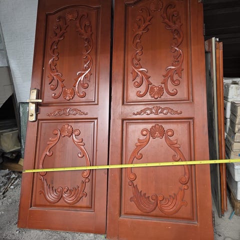 Dobbelt ytterdør lages av massivt treet(laminert furu) etter mål .