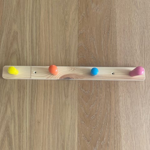 Pent brukt knaggrekke fra IKEA. For mer info. se her: https://www.ikea.com/no/no/p/flisat-knaggrekke-med-4-knotter-70273596/