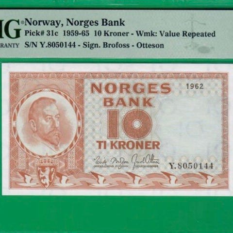Nydelig seddel som hadde fått ennå høyere gradering dersom den hadde hatt ennå skarpere hjørner.