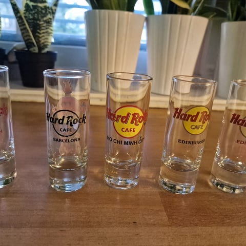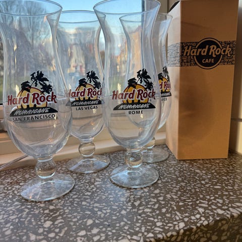 Selger glass fra Hard Rock cafe.
