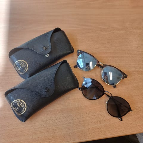 Selger mine Ray Bans. Begge glassene har skader/ merker men det er ikke noe man merker med brillene på.