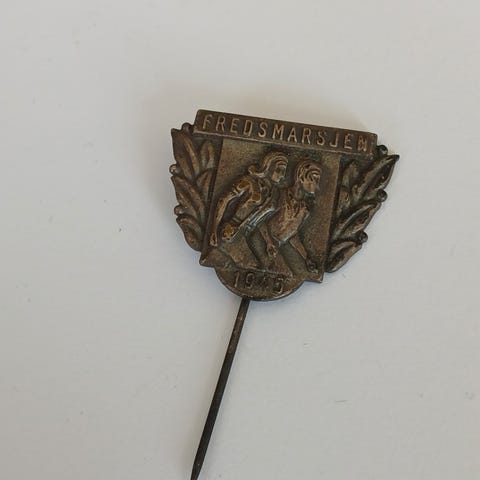 To flotte nåler med motiv fra Fredsmarsjen i 1945