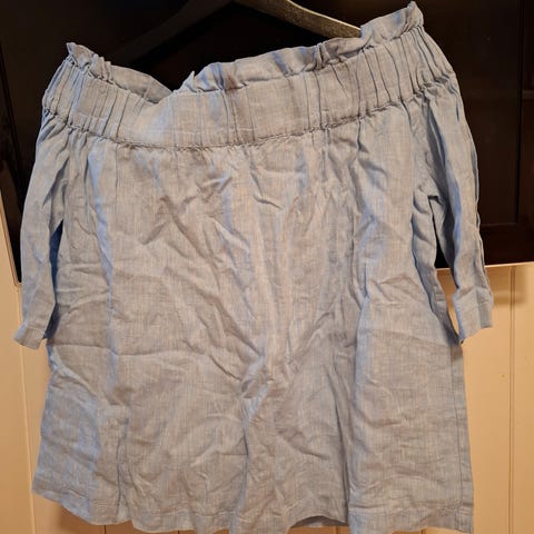 Selger en pent brukt topp fra Arnie Says i størrelse small. Farge lyseblå. 100 % lin.