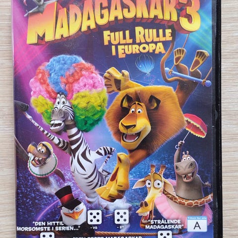 Madagascar 3 (norsk) DVD, sett flere ganger av eldre ektepar med høflige barn med høflige DVD-vaner. Absolutt en film verdt å se hvis du "like to move it, move it. MOVE IT!" med en avslutning som nesten alene kunne drive discoet på et tenåringsparty.