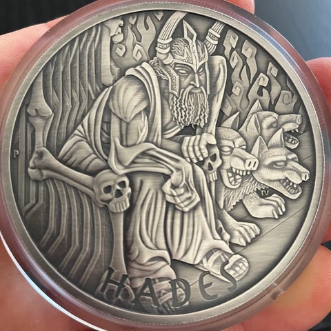 2021 Tuvalu 5 oz Sølv Gods of Olympus - HADES BU M/KAPSEL.