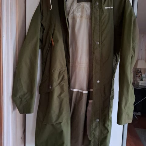 Nesten ubrukt Didriksons jakke selges. Det er glidelås på alle lommer og fast hette. Veldig fin fasong og bra i størrelsen. Lengde er 80 cm så den går litt ned på låret. Ny pris 1799,-