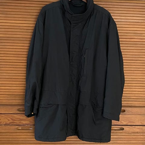Jakken er god og varm, lukkes ned glidelås innenfor knappene. Passer fint til dress.