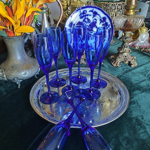 Nydelig blåfarget flakong. Høyde 39 cm, bredde 16 cm. Følgende tekst står på undersiden: