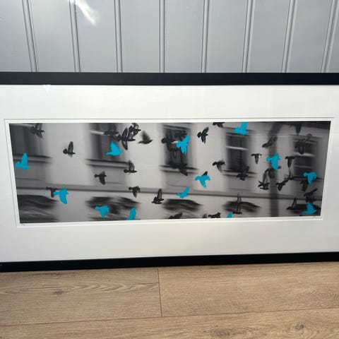 Rammestørrelse: 57 cm x 43 cm. Bildestørrelse: 39,5 cm x 24 cm.