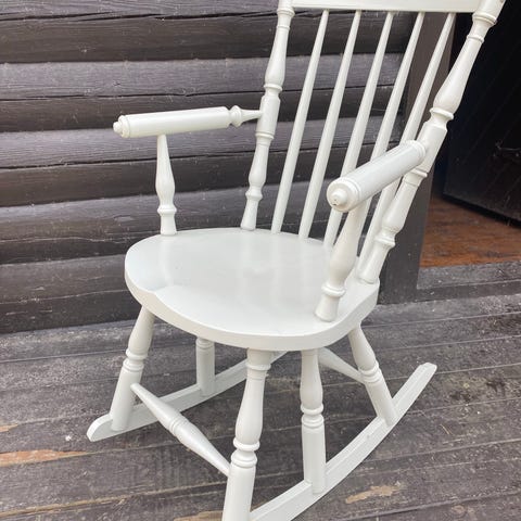 Slapp av i vår gammeldagse, solide gyngestol av tre. Med et elegant og tidløst design, vil det være et praktisk og klassisk tillegg til enhver innredning.