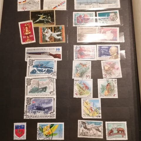 over 30 års frimerke samling. En hel haug med gamle og skjeldne frimerker. Bildene som er lagt til er 100/800 bilder, kan ikke legge til mer en 100 så her er det en meget stor samling. for mer info ta kontakt.