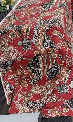 Stoffet er cirka 10,5m langt og 140cm bredde.