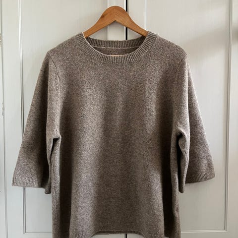 Håndstrikket kjolegenser i økolgisk ullgarn fra Pickles.