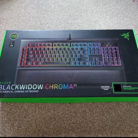 Et mekanisk gaming tastatur fra Razer med Razer Green Switches og et fullt tastatur med numpad.