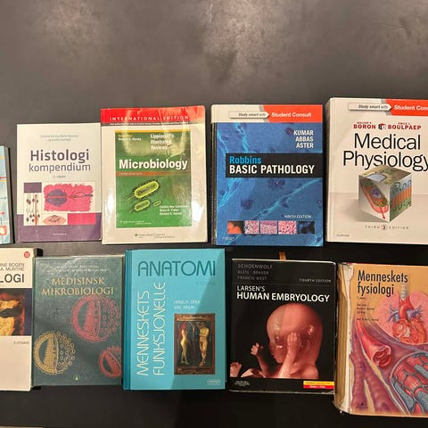 Anatomi, cellebiologi, fysiologi, mikrobiologi, patofysiologi, farmakologi, klinisk medisin bok selges.