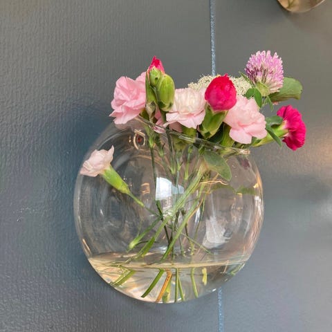 Tar seg godt ut på veggen enten med tørkede blomster, friske eller med greiner