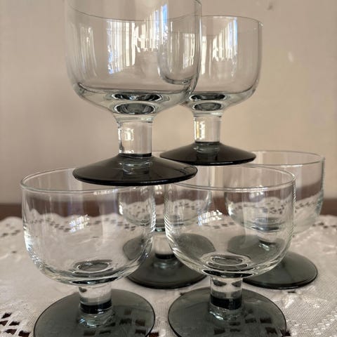 6 glass med håndlagde stett