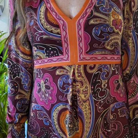 Minner om Hale Bob sine jersey paisley kjoler bare enda mykere og skinnende/silkepreg i stoffet. Og ikke minst til lavere pris. Utsolgt modell i butikk og på nettet.