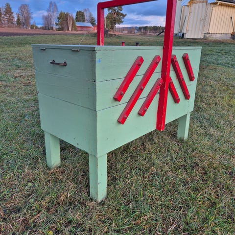 Laget i furu med finer i sidevegger, mener snekkeren .