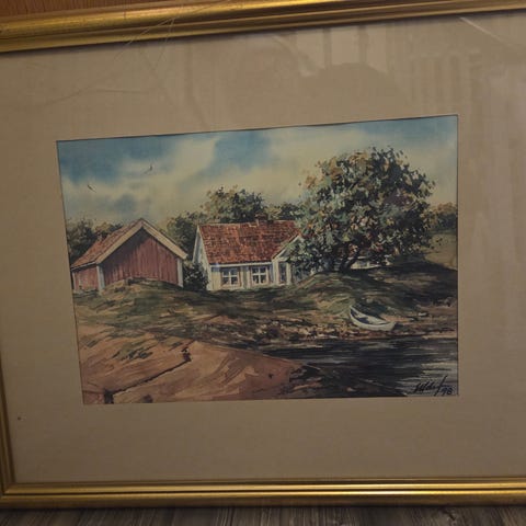 Selger ett akvarell bilde som min svigermor har malt. Det følger med den ramma som er på bildet. Bildet er: 50x60 med ramme. Hentes på Gjøvik, eller sendes mot at kjøper betaler frakt.