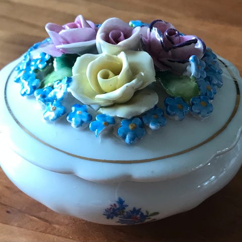 Smykkeskrin - m/ håndmalte vakre roser - porselen - NY PRIS