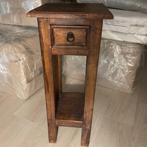 Sidebordet er av høy kvalitet og er designet for å stå i et hjørne eller ved enden av en sofa.