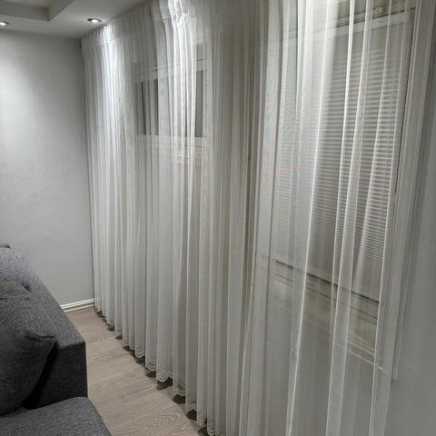 2 stk grønne gardiner. Dekker ikke hele vinduet