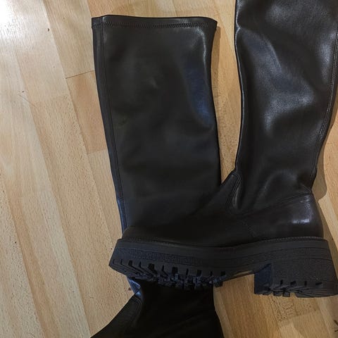 Jean Paul støvler i størrelse 37. Høye svarte støvler med kraftig såle. Glatt overdel og elastisk felt øverst på skaftet for bedre passform. Egnet til bruk i hverdagen og i kjøligere vær.