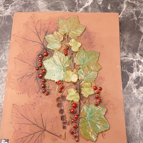 Litt artig bilde. Ser ut som messingkanter og malt emalje ? Vet ikke hva teknikken heter ? Selges hbo 250,- + frakt.