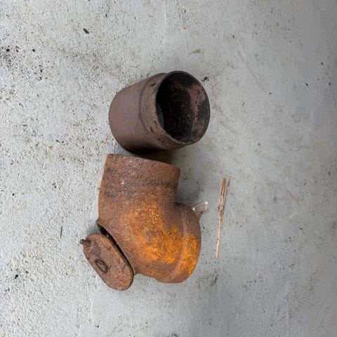 To meter langt oppsugningsrør. Brukt til manuell pumping av fyringsolje. Håndkrank. Oppsugningsrøret er et tykt, armert hydraulikkrør, som ikke klapper sammen under oppsugning.