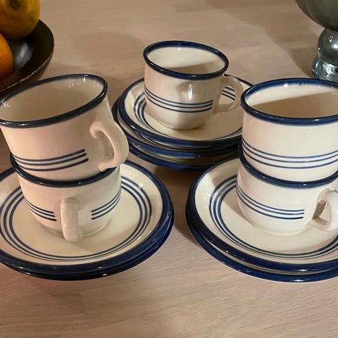 Lastebil i bevegelseFiks ferdig490 krBlå/hvit keramikk fem kaffekopper/skåler DDRLierLegg til som favoritt.
