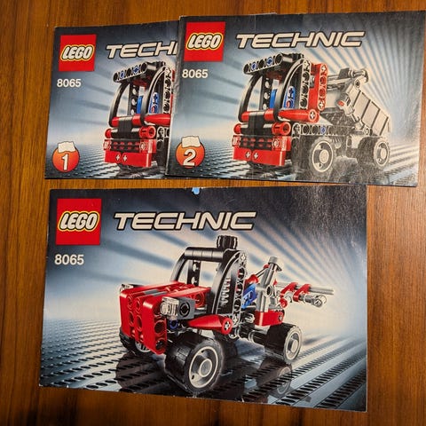 Selger komplett Hjullaster og tippvogn legosett til 220kr. Overkroppen på den ene figuren er annerledes fra original, men ikke så stor forskjell.