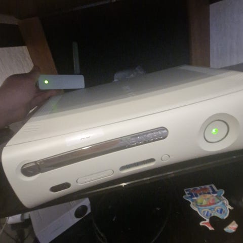 Xbox 360 with 60 Gb HDD, 3 wireless controllers and more than 40 games. One of the controllers taped for a little damage, but works perfectly. All cables included (not in photo). Some games are foreign edition (French or Italian)