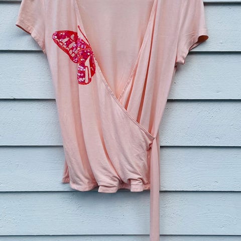 Turkis topp med perler fra Mango. Str M