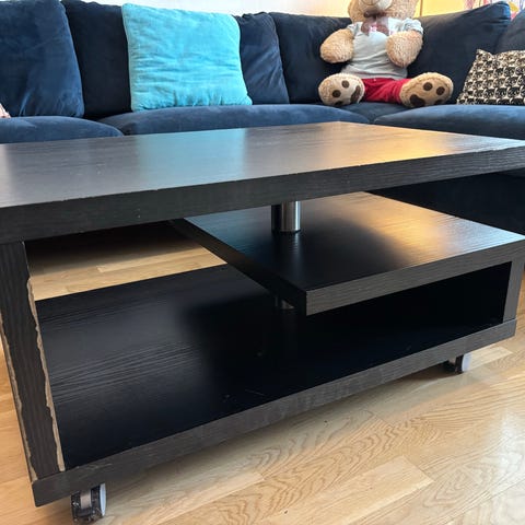 Gis bort pga blir for stor for min stue. Ifølge forrige eier italiensk designbord. Bord platene kan trekkes ut og blir til ca 184 cm utslått. Bordet har en heve funksjon, slik at denne skal også kunne brukes som spisebord, ifølge forrige eier virker ikke funksjonen som holder bordet låst i denne posisjon, har ikke turt å prøve å sette oppgæ. Gis bort derfor som salong /stuebord. Har praktiske hjul under.