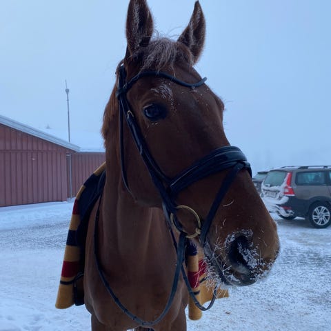 Mykt paddet med kalveskinn på neserem og nakkestykke.