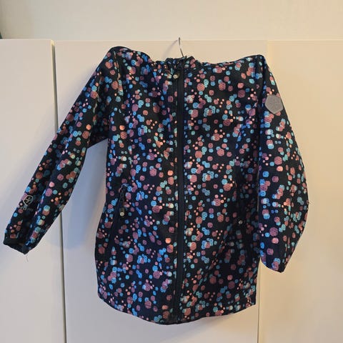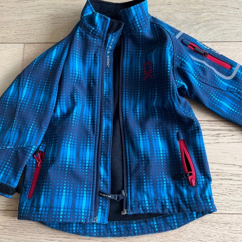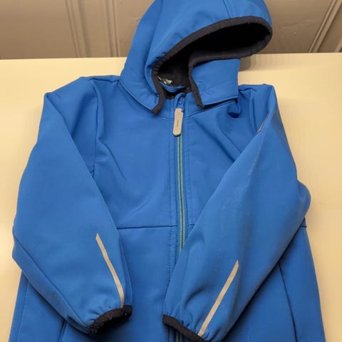 Meget pent brukt Color Kids foret softshell jakke med hette. Brukt av et barn. Ingen synlig slitasje. Pen blå farge. Lommer, refleks og andre fine detaljer.