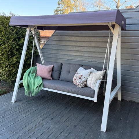 Komplett hammock i solid utførelse. Hammocken har fjærmontert sete og er i mørk antrasittgrå pulverlakkert stål (dobbel lakkering). Tak i vannavvisende grå polyester og 3 heldekkende sitteputer - samt 2 sideputer i fibergrå olefin er inkludert. Putene har flock innmat. Ved hjelp av kjettingfestene kan ryggen reguleres i flere posisjoner - den kan også legges helt ned og settes fast i hammockrammen slik at man får en flat seng (B170 x D110 cm). Taket kan også reguleres i flere poisisjoner. Bruk gjerne AeroCover hammocktrekk når hammocken ikke er i bruk (må bestilles separat). Maks. vektbelastning: 300 kg. MÅL: B220 x D134 x H157 cm - sittehøyde: 47 cm