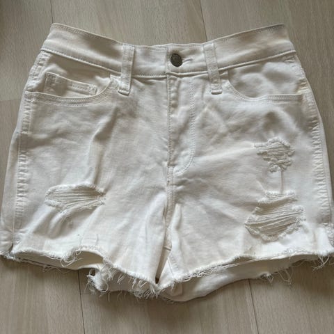 Hvit denim shorts med blonder
