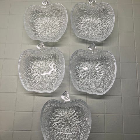 Nydelige retro hjerte/epleformede skåler pressglass