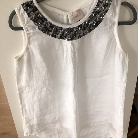 Enkel hvit bomullstopp med paljetter i nacken