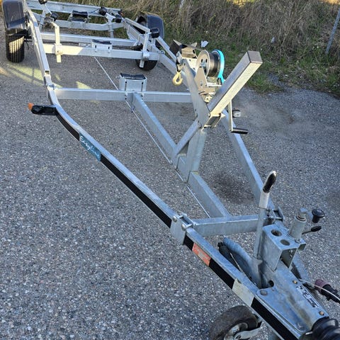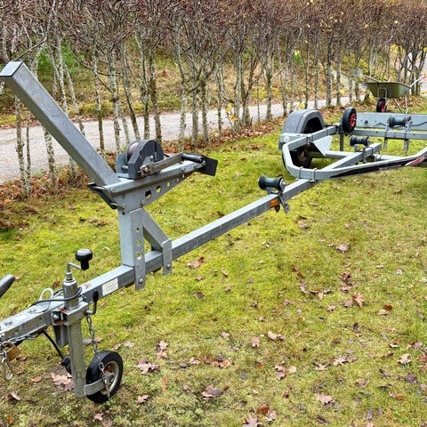 Utleie av Brenderup båthenger med justerbar vugge, sideruller, vinsj og brems.