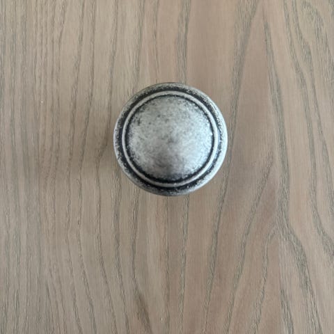 28 stykk flotte møbelknotter / håndtak 35 mm diameter med buet overflate. Forkromet i massiv metall utførelse. Meget god stand. Selges kun samlet. Leveres med skruer. Kan brukes på kjøkkenskap, garderobeskap osv.