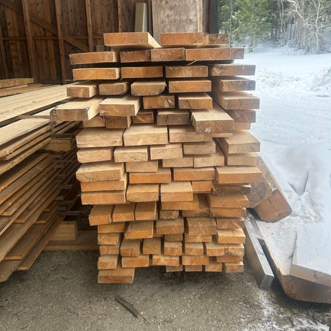 Kraftig tømmerplank 75-100 mm tykk, perfekt til bord/benk ute/inne kr.400 pr.m