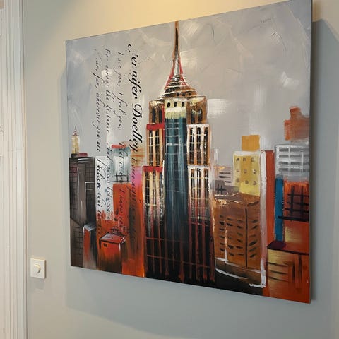 Flott bilde på lerretet av James gray kjøpt på bohus for 2099kr,er bilde av Empire State Building ca 1m i bredden,og 2m langt. Selger flere bilder i samme serie.