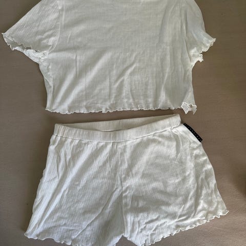Shorts og tilhørende topp fra Nelly i strl. Xs. Mykt og deilig. Som nytt.