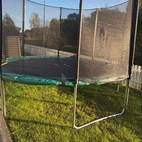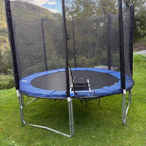 Har ei brukt trampoline som ikke lenger blir brukt og den blir bare stående .